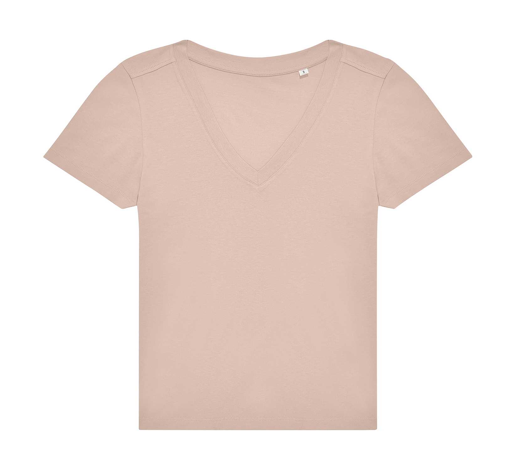 Damska koszulka V różowa – bawełniany t-shirt o klasycznym kroju w kolorze pudrowego różu z dekoltem w tzw. serek. Wykonany w 100 % z miękkiej bawełny o gramaturze 145 g. Posiada boczne szwy i taśmę wzmacniającą na karku. Ten t-shirt jest dostępny również w innych kolorach: biały, czarny, jasny beżowy i w Amalfi Teal.