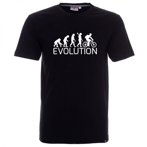 Wspaniała koszulka ukazująca ewolucję człowieka według Darwina. Ewolucja roweru. Ewolucja przyczynia się do powstawania olbrzymiej różnorodności gatunkowej.