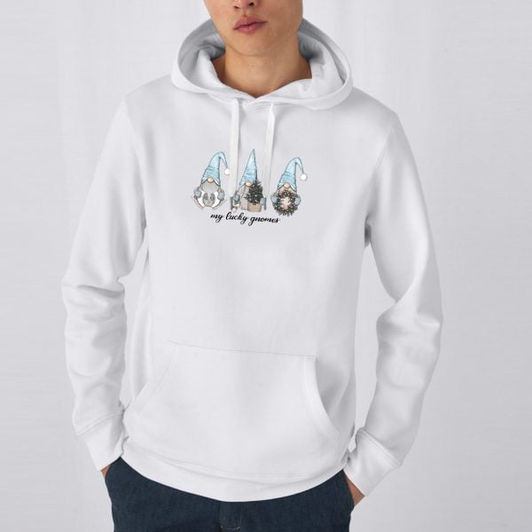 Bawełniana bluza w kolorze białym z rysunkiem zabawnych gnomów. Idealna na chłodne dni, doskonała na prezent. Wykonana z grubej, miłej w dotyku, wysokiej jakości bawełny.