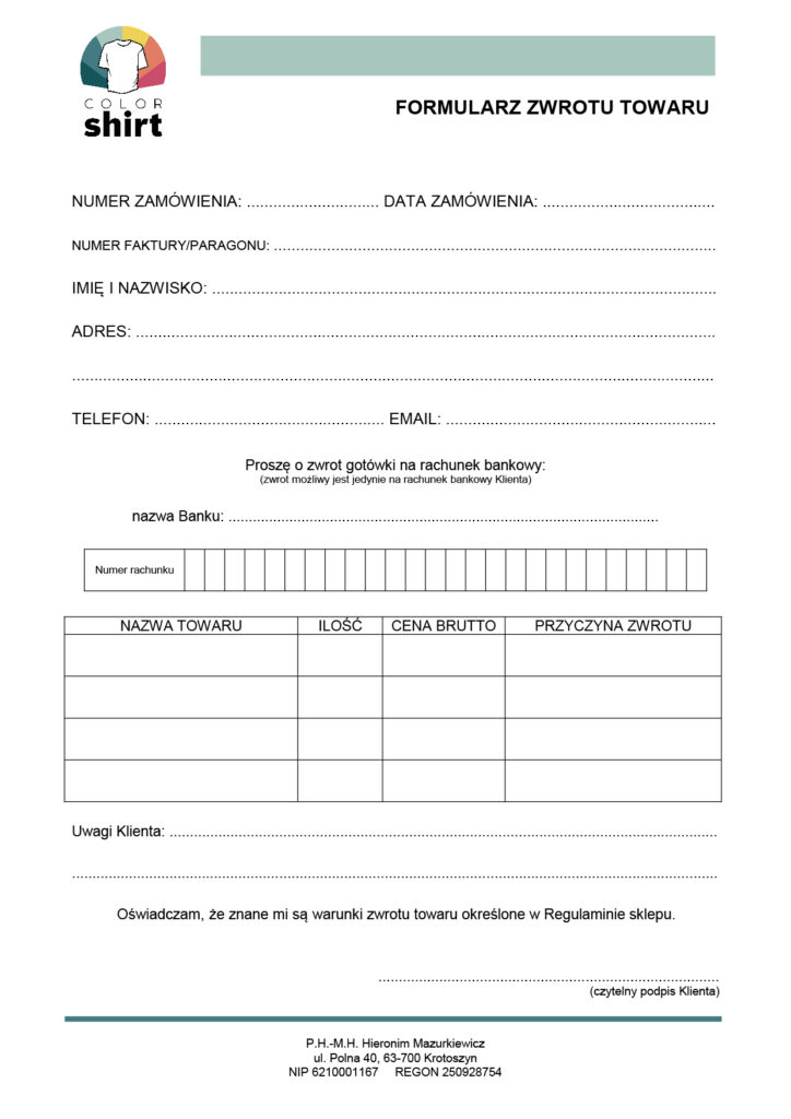 Zwrotowi nie podlegają rzeczy personalizowane!